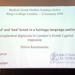 A public lecture by Dr Petros Karatsareas (University of Westminster) who will explore the notions of linguistic (im)properness and (in)correctness among London’s Greek Cypriot parikia (‘expatriate community’), focussing on attitudes towards Standard and Cypriot Greek